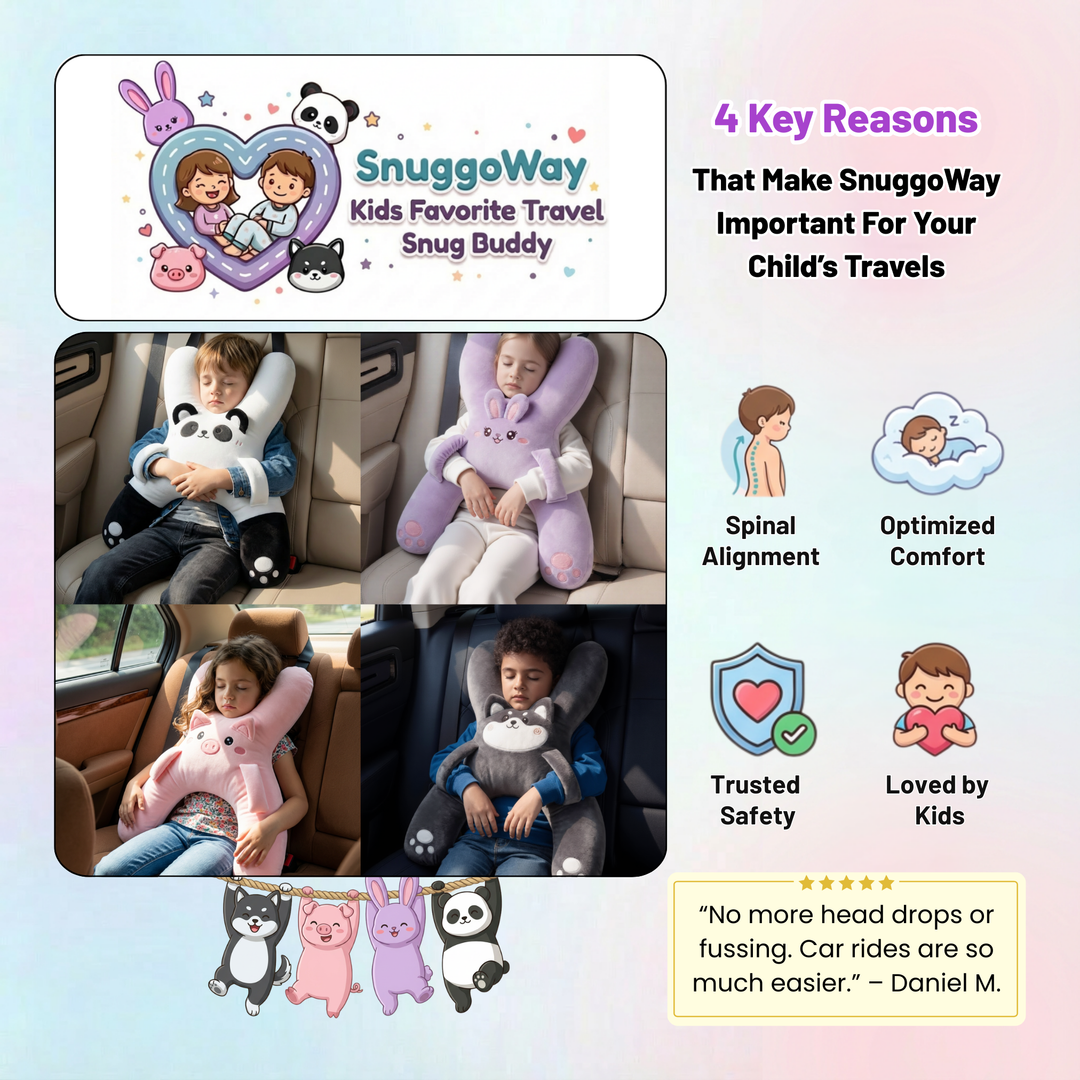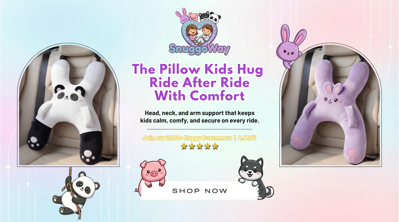Upgrade your child’s travel experience with SnuggoWay™. Thoughtfully designed with a soft, supportive shape, it gently supports the head, neck, and arms during car rides. SnuggoWay helps kids stay comfortable, relaxed, and settled—making every trip calmer, longer, and more enjoyable with effortless ease.